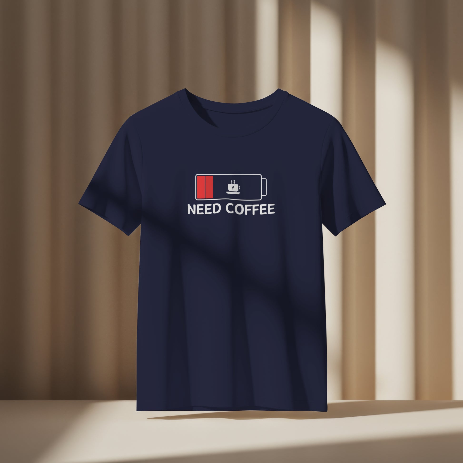 Start your day with a smile and a caffeine boost! The Trendera "Need Coffee" Graphic Tee features a playful battery icon almost empty, paired with a steaming coffee cup—perfect for coffee lovers everywhere. Made from 100% soft cotton, this comfortable and stylish T-shirt is ideal for those who run on coffee and good vibes.